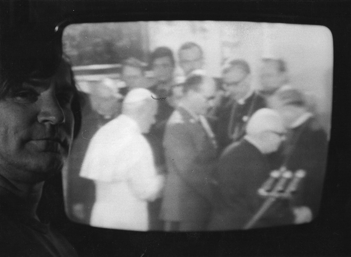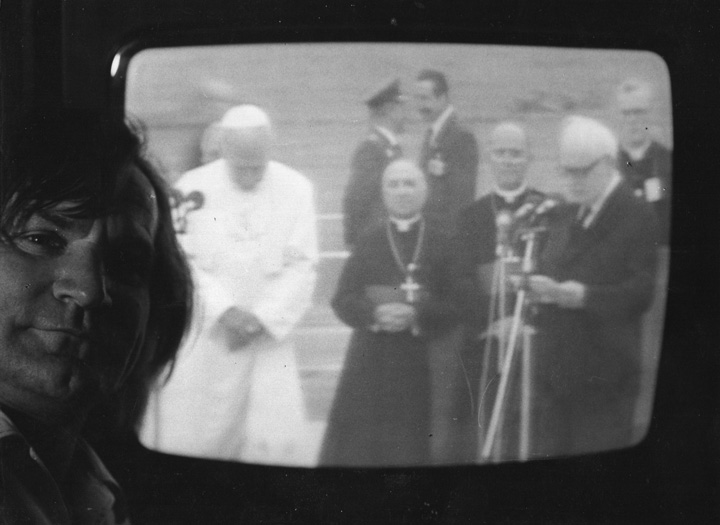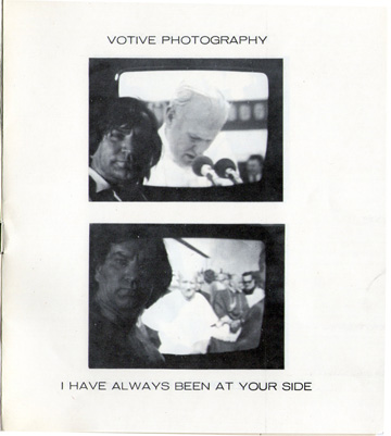 Początek lat osiemdziesiątych do nawrót do wątków autobiograficznych. Tym bardziej, ze czasy stanu wojennego wielu artystów kierują do działań o charakterze prywatnym. Wtedy to powstaje cały ruch sztuki niezależnej, artyści stają się twórcami, którzy życie artystyczne animują sami poprzez szereg nieoficjalnych wydarzeń. Odbywa się wtedy wiele spotkań, sympozjów, prezentacji w prywatnych pracowniach, są tzw. pielgrzymki artystyczne – wszystko to bardzo spontanicznie i poza zasięgiem cenzury. Wtedy to też powstaje tzw. Kultura Zrzuty, która najdobitniej objawia się podczas słynnych prezentacji Festiwalu Kina Niemego na Łódzkim Strychu przy ulicy Piotrkowskiej . Grupa Łódź Kaliska i bardzo wielu fotografów, performerów, animatorów sztuki realizuje niezwykle ciekawy, niezależny i spontaniczny program. Są też miejsca instytucjonalne, które zachowują swoją niezależność i tam również odbywają się wystawy i spotkania. Obok Galerii BWA w Lublinie prowadzonej przez Andrzeja Mroczka, warszawskiej Dziekanki, takim miejscem jest również Mała Galeria ZPAF, w której powołana zostaje tzw. Rada artystyczna, mająca na celu uniemożliwienie likwidacji galerii której domagała się większa część konserwatywnie nastawionych członków ZPAF. Józef Robakowski jest jednym z tych twórców którzy inicjują obronę przetrwania galerii, prezentują tam swoje prace i to już w 1983 roku, kiedy wraz z Andrzejem Różyckim realizują wystawę pt. „Dwa zdjęcia”. Robakowski pokazuje serię autoportretów na tle monitora telewizyjnego, na którym odbywa się transmisja z powitania papieża Jana Pawła II, który przybył z drugą wizytą do kraju. W tle obok papieża zobaczyć można oficjeli m.in. generała Wojciecha Jaruzelskiego czy przewodniczącego Rady Państwa Henryka Jabłońskiego. Tytuł całego cyklu to Fotografia wotywna, natomiast swoistej ironii dodaje deklaracja autora pod zdjęciami: „Zawsze byłem przy Tobie”. Wystawa jest o dziwo tolerowana przez cenzurę, chociaż jej wydźwięk jest oczywisty. /14