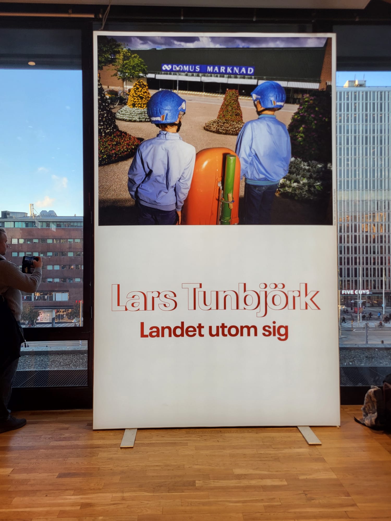 Właśnie tam odbywa się bardzo ciekawa wystawa Larsa Tunbjörka (1956–2015), który był jednym z bardziej znanych szwedzkich fotografów, słynącym z umiejętności uchwycenia codzienności z ironią, czułością i głębokim zrozumieniem. Jego wystawa ”Landet utom sig” jest nową interpretacją kultowego cyklu z lat 90., uzupełnioną o niepublikowane wcześniej materiały. Ekspozycja nie tylko oddaje hołd dorobkowi Tunbjörka, ale także zachęca widzów do refleksji nad zmianami, jakie zaszły w szwedzkim społeczeństwie. Zdjęcia przedstawiają Szwecję w okresie przejściowym – gdy model społeczeństwa opiekuńczego ustępuje miejsca kulturze konsumpcji. Tunbjörk fotografuje miejsca codzienne i pozornie banalne: kampingi, centra handlowe, biura, sklepy i inne przestrzenie publiczne.