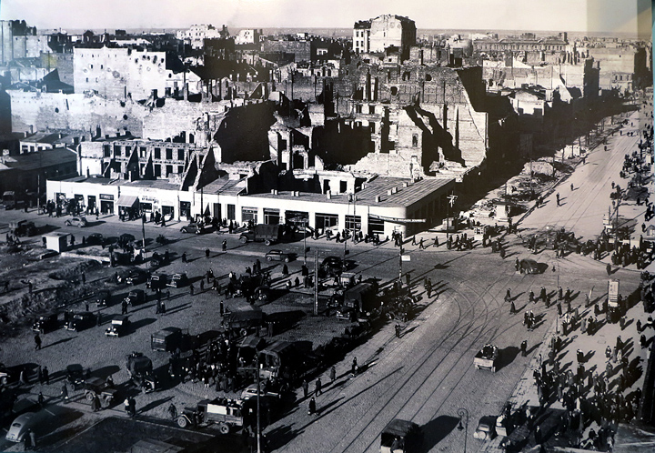Polska po II wojnie była krajem szczególnie naznaczonym skutkami wojny, a Warszawa najbardziej zrujnowaną stolicą Europy. Kiedy Vachon przyleciał do Polski w styczniu 1946 roku i zamieszkał w jednym z niewielu ocalałych budynków obok hotelu Polonia przy Alejach Jerozolimskich, widok z dachu tego hotelu uświadomił mu, jak straszliwe zniszczenia dotknęły to miasto. Mając wyostrzoną wrażliwość znakomitego dokumentalisty utrwalił nie tylko ruiny miasta ale również mieszkańców, którzy z ogromna determinacją wracali, by odbudować swoje życie na tych szczątkach które pozostały. Podczas otwarcia wystawy jeden z jej kuratorów, Tomasz Markiewicz, mówił jak ważna była wówczas pomoc udzielana Polsce w ramach UNRRA. Nie chodziło tylko o przysyłane paczki z najpotrzebniejszymi rzeczami, pomoc ta była przeprowadzana na dużą skalę. Na zdjęciach Vachona widzimy traktory, samochody ciężarowe, ambulanse, maszyny, a nawet krowy i konie, które drogą morską dostarczane były do Polski. Na zdjęciach widać też nie ograniczoną jeszcze wdzięczność obdarowywanych w niewielkich miejscowościach, co pewnie po nastaniu ciężkich, opresyjnych lat stalinizmu już potem nie zdarzało się zbyt często.