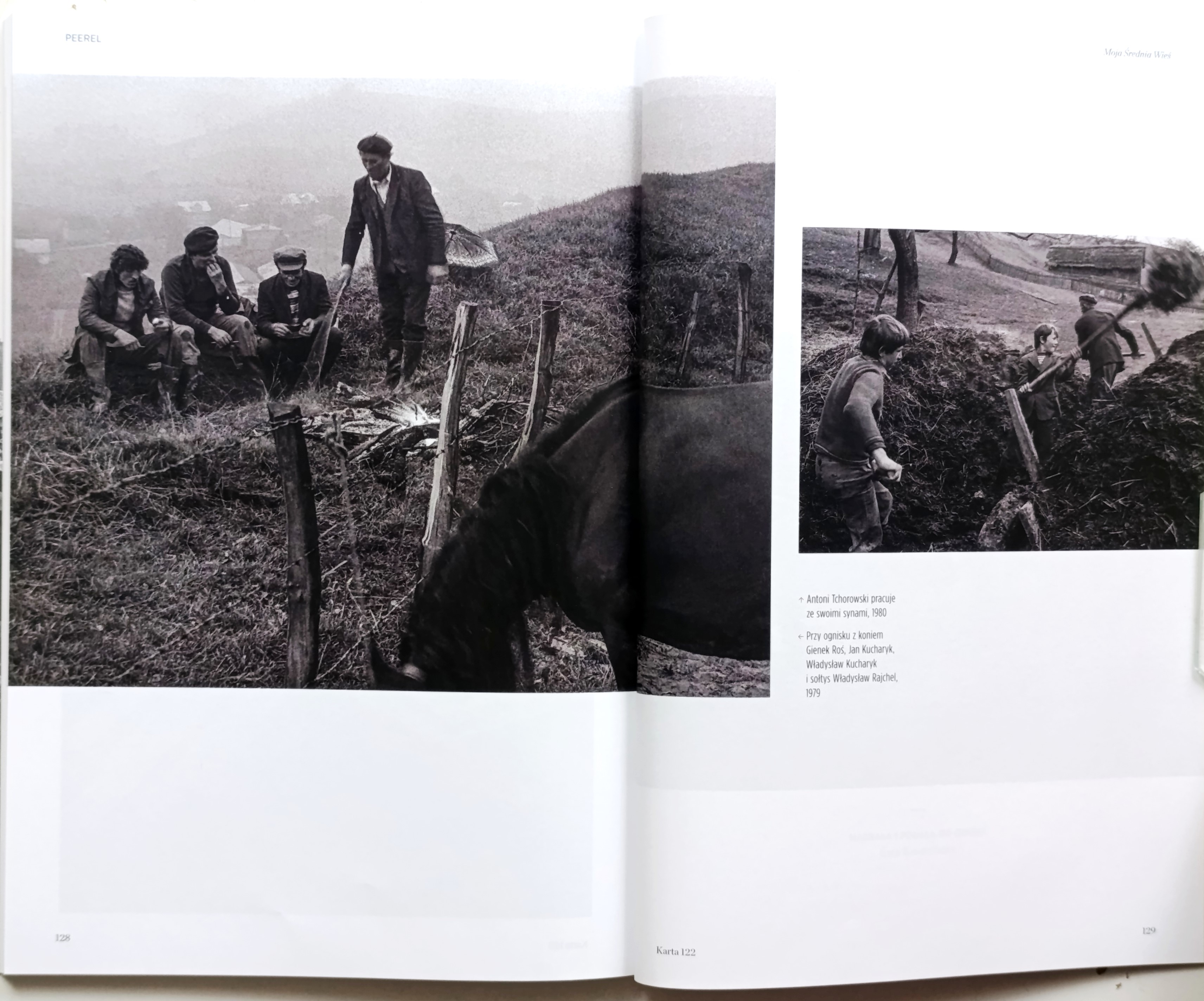 Ta bardzo skrótowa, osobista relacja w KARCIE uzmysławia nam jak fotografowi z innego kraju, innej kultury udało się zrealizować niezwykle cenny dokumentalny zapis. Jest to fotografia pozbawiona romantyzowania w stylu National Geographic, co zresztą od początku było jego świadomym założeniem. Na zdjęciach wszystkie postaci są niezwykle autentyczne, sytuacje nie udramatyzowane, jest w tych zdjęciach rodzaj życzliwego uczestnictwa i współodczuwania świata zwykłej podkarpackiej wsi. Życie codzienne w wymiarze pracy, zwyczajów, kontaktów międzyludzkich, uroczystości rodzinnych i spotkań towarzyskich. Na zdjęciach widzimy bawiące się dzieci, sytuację, gdy dziewczynka przygotowywana jest do pierwszej komunii świętej, na innym zdjęciu wracająca z naręczem złowionych ryb. Prace polowe, sytuacje na podwórkach, wspólne palenie ogniska. Bohaterowie na zdjęciach to nie są postaci anonimowe. Podpisy pod zdjęciami podają ich imiona i nazwiska, co świadczy o zaufaniu, jakie zdobył sobie fotograf w tej małej społeczności. Do Średniej Wsi wracał wielokrotnie, a kiedy przybył tam po 20 latach, by zrobić serię zdjęć kolorowych, okazało się, że z 200 koni które tam były, pozostało jedynie dwadzieścia. To właśnie koń stał się bohaterem chyba najbardziej znanego i podziwianego zdjęcia z tej serii kiedy to w całej okazałości pojawia się wraz z jeźdźcem we wnętrzu kuchennym jednego z gospodarstw.