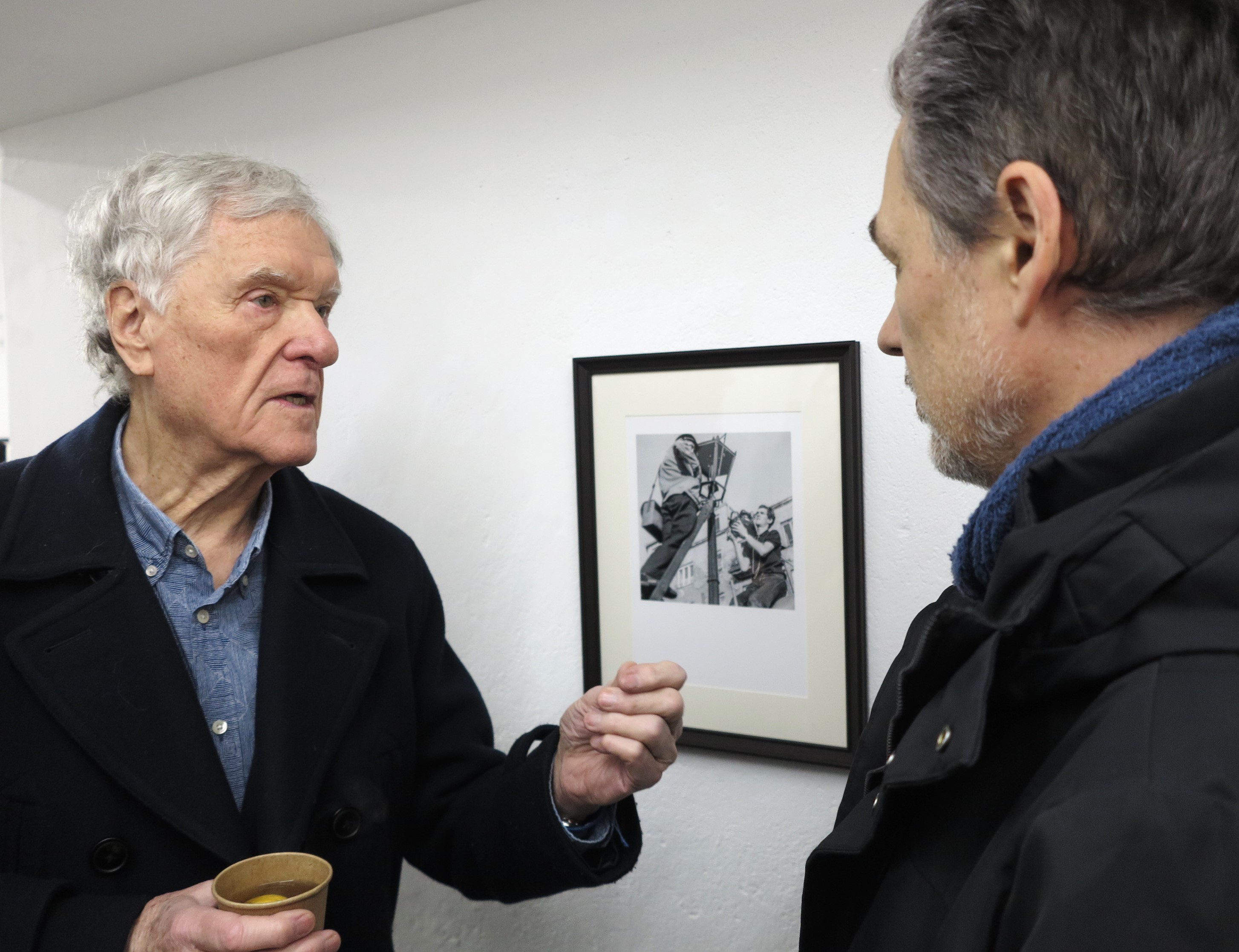 Podczas wernisażu głos zabrał Piotr Jaxa-Kwiatkowski, który jak się okazało znał Marka Zürna jeszcze z czasów szkolnych i harcerskich. Marek Zürn był jego zastępowym w Warszawskiej Drużynie Harcerskiej 121. Razem jeździli na obozy i połączyła ich fotografia. Marek Zürn miał czeski ebonitowy aparat Pionýr. a Piotr Jaxa podobny polskiej produkcji, bardzo wtedy popularny DRUH. Oba aparaty na szeroki film, najczęściej marki FOTON. Filmy te charakteryzowały się ogromnym ziarnem i małą czułością co może wtedy było czymś ograniczającym możliwości techniczne, ale teraz na nowo staje się świadomie używanym, celowo użytym środkiem artystycznym w fotografii analogowej. „Fotografowaliśmy cały czas” – jak powiedział Piotr Jaxa. Na wystawie są dwa zdjęcia na których się sam odnalazł. Na jednym z nich jest sfotografowany jak już po szkole filmowej kręcił materiał dla Polskiej Kroniki Filmowej. Był to jego pierwszy materiał filmowy o latarniku, który zapalał gazowe latarnie. Razem chodzili na wycieczki np. do Puszczy Kampinowskiej, przez pewien czas mieli wspólną ciemnię.